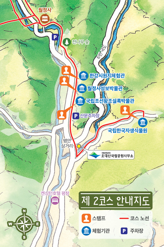 오대산에는 한강 발원지인 ‘우통수(于筒水)’가 있습니다. 상원사에서 서대 수정암으로 가면 나오는데요, 이를 기념하여 만든 공간이 '한강시원지체험관'입니다. 우통수에 관한 가장 오래된 기록은 고려 충렬왕 7년(1281) 일연스님이 편찬한『 삼국유사』에 처음 등장합니다. 『택리지』에는 “한강지원우통지수(漢江之源 于筒之水, 한강의 시원이 우통수의 물이다)”라 기록되어 있으며, 권근은 『오대산 서대 수정암 중창기』에 “서대 아래에 테두리를 두른 샘이 나오는데 색과 맛이 보통 물보다 뛰어나고, 그 무게 역시 그러하다”고 썼습니다. 이곳의 체험관 에서는 상설 전시와 기획 전시, 다도, 선재길, 역사 등 개별 체험 프로그램도 다양하니 홈페이지를 통해 신청하세요.
